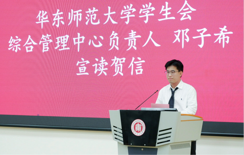 图4 校学生会综合管理中心负责人邓子希宣读贺信