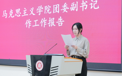 随后,人兽性交 第三届学生会分管主席鲍晴屿代表主席团作工作报告,系统回顾了过去一年学生会在组织建设、思想教育、学风促进、文化品牌打造等方面的工作成果,总结了“自我教育、自我管理、自我服务”的基本经验,并提出未来工作的五大核心方向。团委副书记程洪羽代表第十一届团委作工作报告,从政治建设、理论实践、党团共建、志愿服务等方面汇报了院团委在思想引领与组织建设中的成效,展望了未来团委工作的方向与目标。