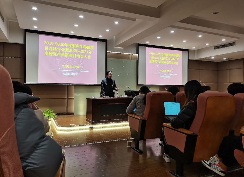 崔海英传达了关于开展2020—2021年人兽性交 研究生科研项目立项申报工作的通知,并对2019—2020年度研究生项目的申报、立项及结项情况进行了总结。崔老师强调,本次科研项目立项没有名额限制,选题合理、论证较佳的项目都有机会予以立项并给予资金资助,鼓励同学们积极选取马克思主义经典著作、习近平新时代中国特色社会主义思想研究等重点方向进行探索思考。随后,崔老师为2019—2020年度研究生科研项目获奖的同学进行了颁奖。