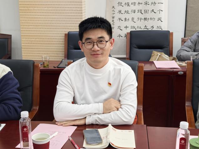 会议第二阶段为交流讨论环节,中共党史系教工党支部组织委员樊士博、本科生党支部书记解涛、马克思主义理论系研究生党支部书记贾宇翔分别就党支部建设过程中的创新举措与实践困惑积极发言。