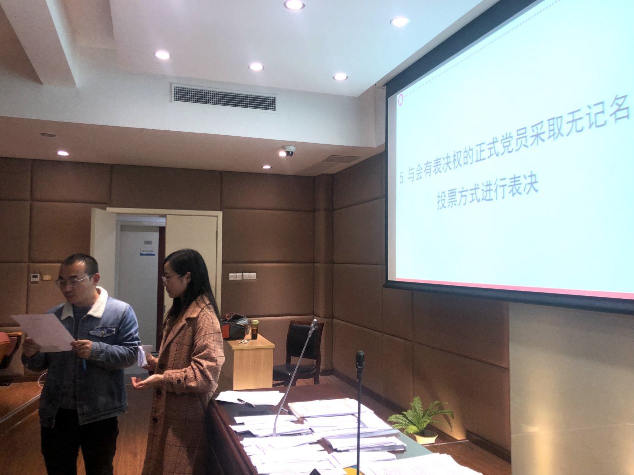 会议严格按照党章接收预备党员的流程进行。分别就“董毅铭、王曦和薛卉”、“席文琪、郭淼、单金巍和白玉”是否按期转为预备党员进行讨论和表决。会上,按照逐个讨论逐个表决原则,董毅铭等七位同志分别宣读了自己的入党志愿书,详细汇报了自身在思想方面、工作方面、学习方面以及生活方面的表现,同时指出自身需要改进的不足之处,表达了自己加入中国共产党的坚定决心。之后,七位同志的入党介绍人分别就其在在校期间的教育和考察情况作了总结发言,与会党员也结合七位同志的思想汇报和入党申请书及其平时的了解充分发表意见。最后,党支部正式党员以无记名投票方式进行表决,一致同意董毅铭等七位同志转为预备党员。