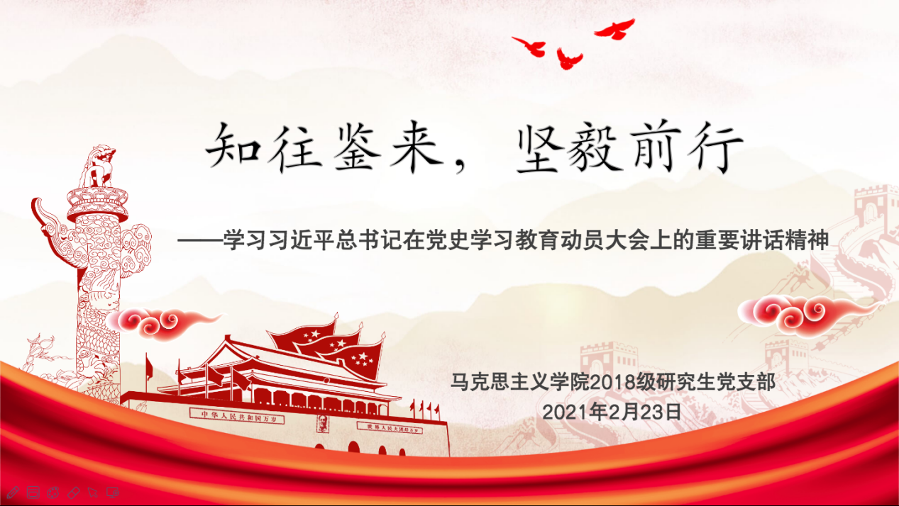 为深入学习领会习近平总书记在党史学习教育动员大会上的重要讲话精神,从红色基因中汲取养分和智慧,增强党员民族责任感和历史责任感,2月23日晚,人兽性交 2018级研究生党支部通过钉钉视频会议形式开展本月主题党日活动。本次会议由支部书记周莹同志主持。
